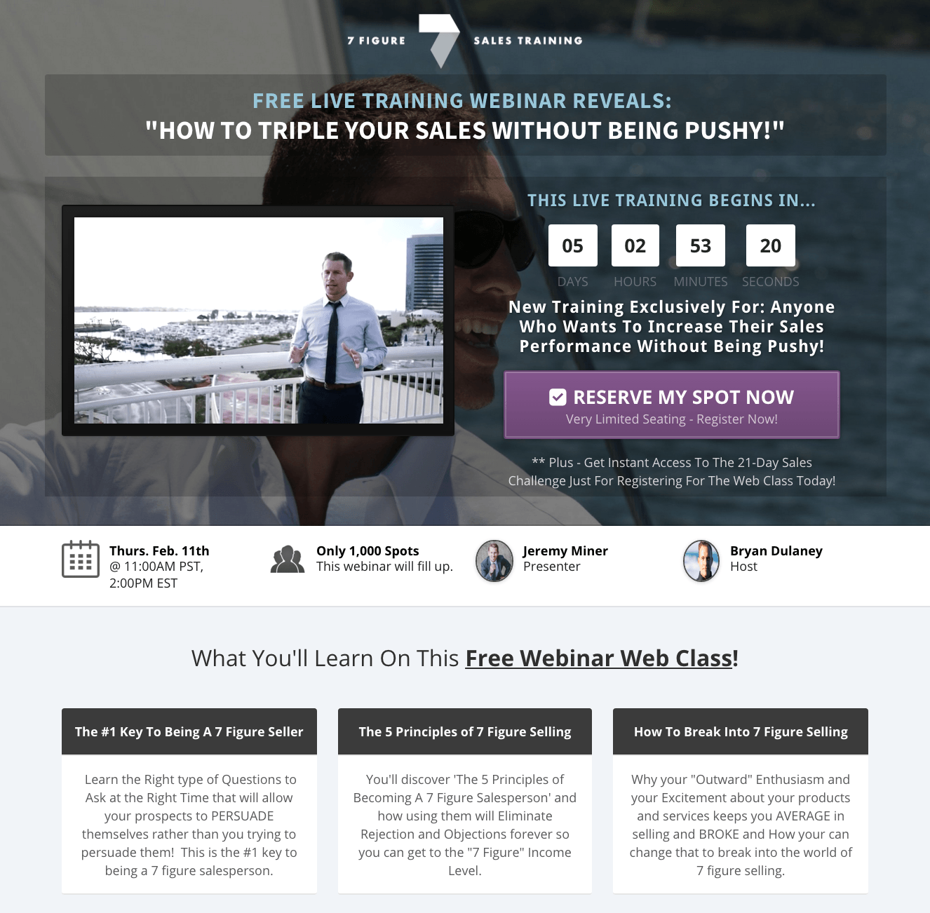 7 Figure Sales Training is a Sales Mastery Training company that helps sales professional BREAK Traditional Selling Techniques, also known as The “Old Model” of Selling, which triggers sales resistance from prospects leading to objections and rejection. Jeremy Miner helps you learn and master the “New Model” of selling, in the era that we live in today, so you can achieve record breaking performance and get into the Top 1% of salespeople.